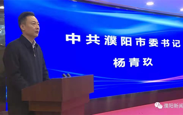 Yang Qingjiu, Secretary of the CPC Puyang Municipal Committee, delivers a speech