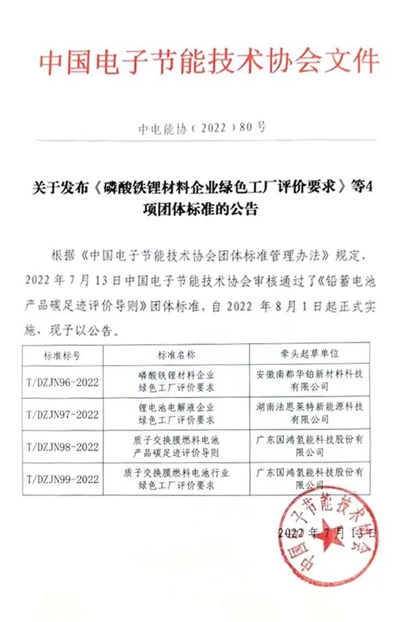 Recently, two standards, the PEMFC Products Carbon Footprint Assessment Guide (T/DZJN98-2022) and the PEMFC Industry Green Factory Assessment Requirements (T/DZJN99-2022), the formulation of which was headed by Sinosynergy, were officially released and will come into force on August 1, 2022.