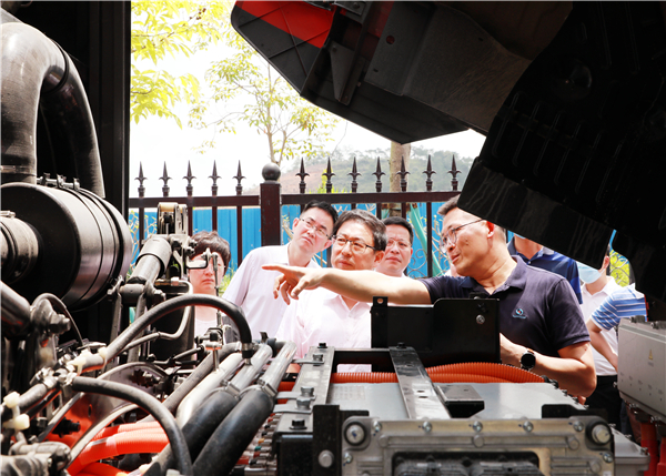 During the investigation, Deputy Director-General Yang Jun and his entourage first visited the Foshan (Yunfu) Hydrogen Research Institute for Hydrogen Energy & New Material Development. Dr. Liu Zhixiang highlighted the core technical team and scientific research achievements of Sinosynergy, and said that under the guidance of the new Notice on Developing Fuel Cell Vehicle Demonstration Applications, Sinosynergy is strengthening R&D efforts, and upgrading product technologies and performance.