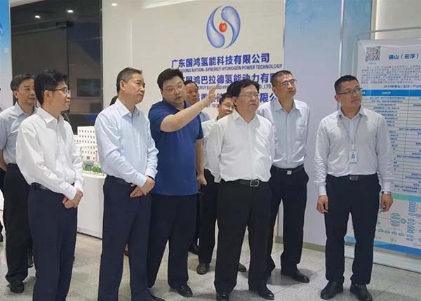 On the afternoon of April 8, Xin Guobin and his entourage visited the Foshan (Yunfu) Industrial Transfer Park, to inspect the hydrogen energy industry, and conducted in-depth investigations on Sinosynergy, Feichi Automobile and other enterprises. Wang Sheng, Li Jian, Shi Donghong and Xu Guo accompanied them.